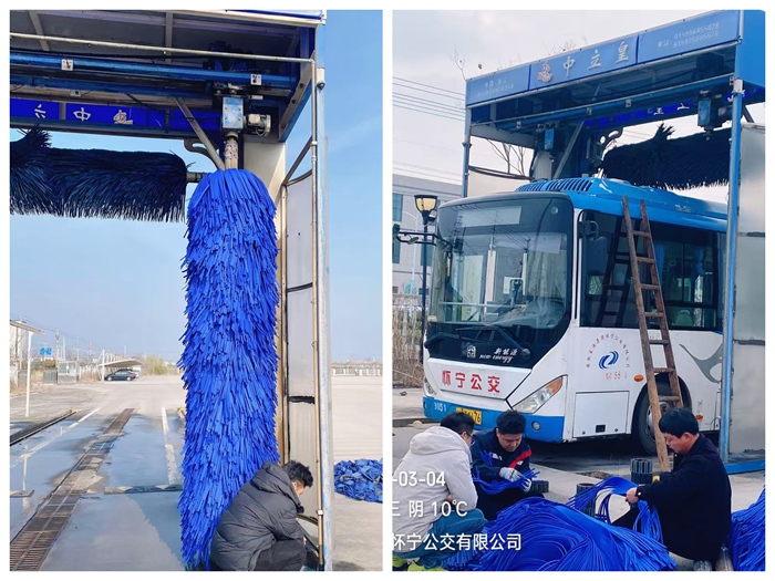 2026年3月4日,怀宁公交停保场内呈现出一派繁忙而有序的景象,公司技术人员与洗车机厂家售后团队紧密合作,成功完成了大型洗车机转轴毛刷的全面更新工作,为文明卫生城市建设再添新动力。
