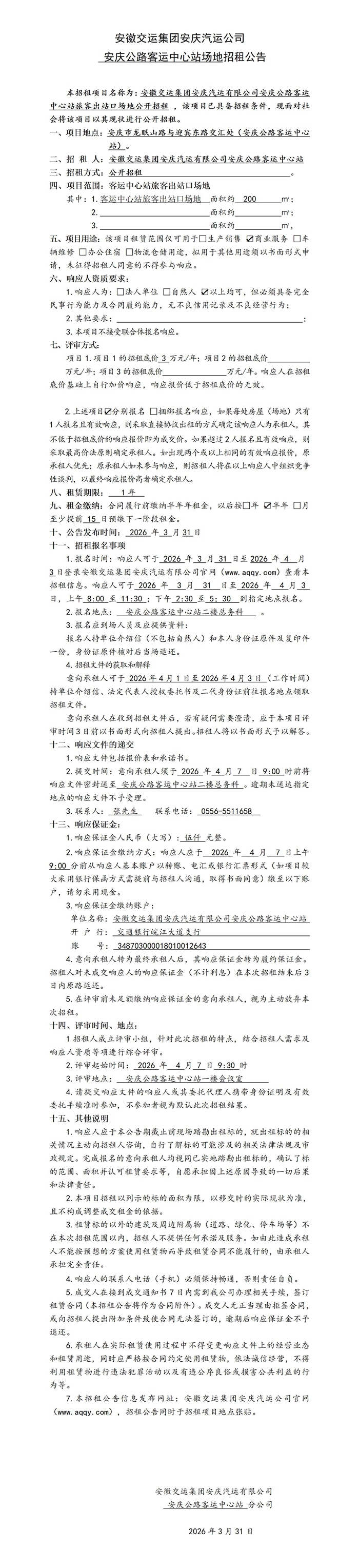 安庆中心站出站口招租公告
