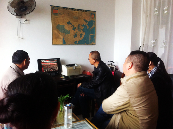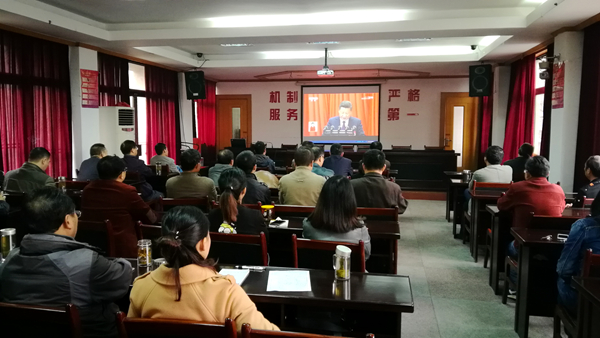 太湖分公司领导黄小华及行管人员在公司办公室集体收看,各支部,科室分别收看。