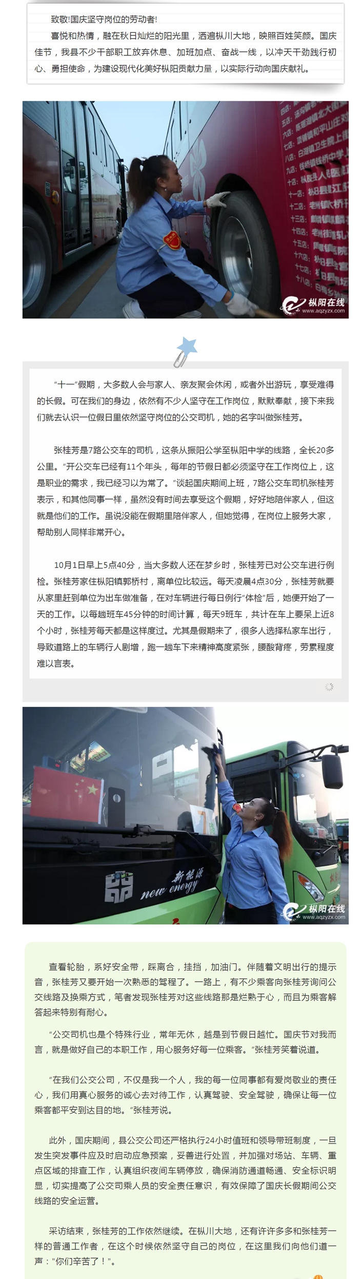 国庆我在岗 | 枞阳公交司机张桂芳:方向盘上过假期