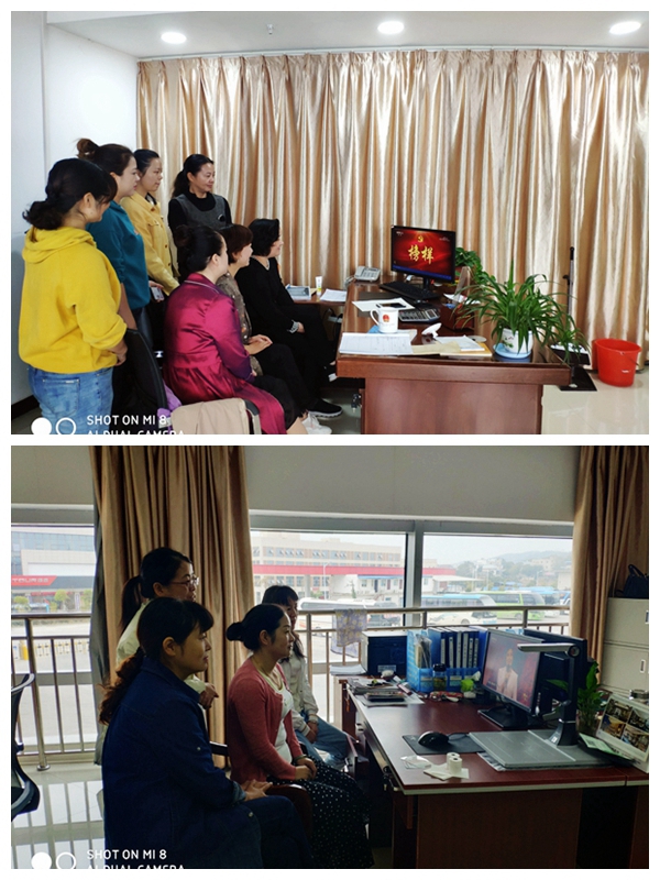 在各科室、各工作片区,大家通过手机、电视、电脑进行观看。片中60多年深藏功名,一辈子坚守初心、不改本色的老英雄张富清;以“吃亏”换来百姓幸福的濮阳县西辛庄村党支部书记李连成;用生命诠释初心和使命,在抗洪中牺牲的广西壮族自治区百色市乐业县新化镇百坭村第一书记黄文秀;20年携带邮件划出20万公里“水上邮路”的淮安市洪泽区老子山镇邮递员唐真亚;“宁肯一人脏,换得万家净”的北京市东城区环境卫生服务中心十所粪便清运工、“三八女子抽粪班”班长李萌;举家“落户”山村的“羊书记”,海南省妇联驻保亭县加茂镇共村第一书记隋耀达;坚持自主创新、协同创新、开放创新,实现人类航天器首次在月球表面巡视探测,率先在月背刻上中国足迹的嫦娥四号工程党组织的先进事迹打动了观众的心。