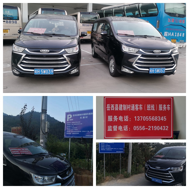 2020年8月18日6时,岳西飞雁旅游客运公司3台挂有“岳西县建制村通班线客车服务车”标牌的7座商务车正式对乡镇发班,承担着岳西县17个建制村通班线客车运输服务。
