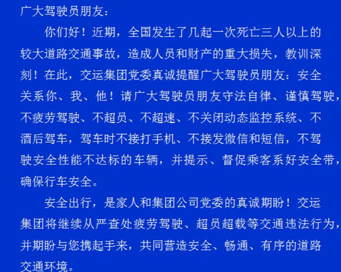 致交运集团广大驾驶员朋友一封信