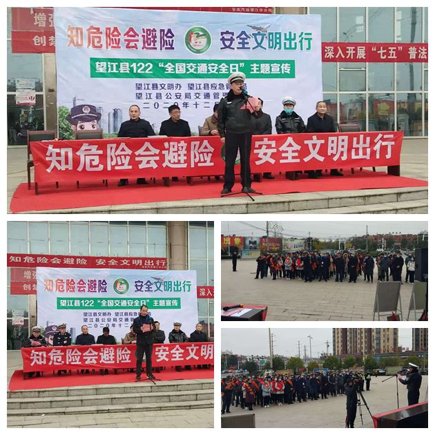 12月2日上午,由望江县文明办、望江县应急管理局、望江县公安局交通管理大队共同协办的2020年“全国交通安全日”主题宣传活动在县客运中心站前广场举行。县交通运输局、县公安交警大队、安庆汽运望江分公司、公交公司、驾校、出租车公司等有关单位参加活动。