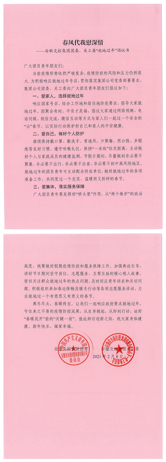安徽交控集团团委、关工委“就地过年”倡议书