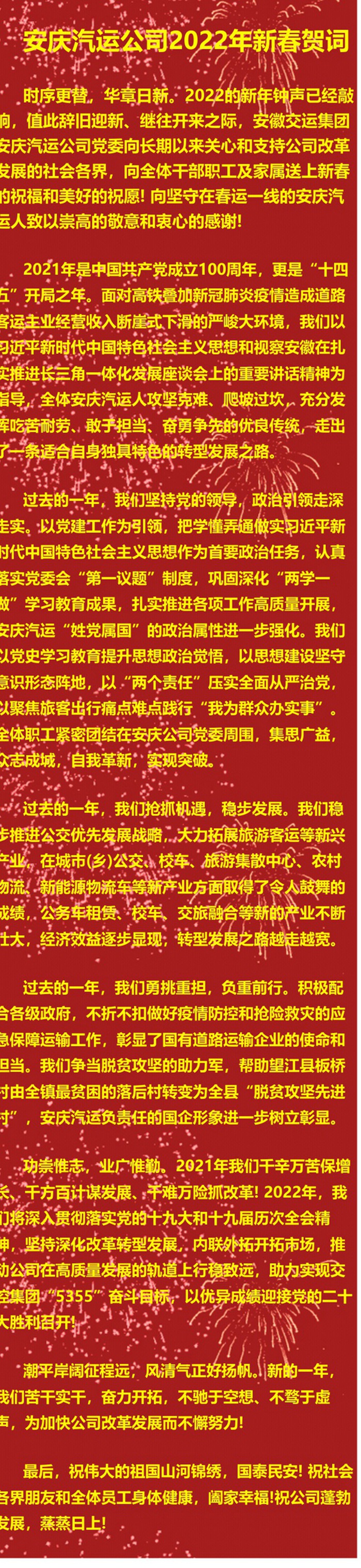 安庆汽运公司2022年新春贺词