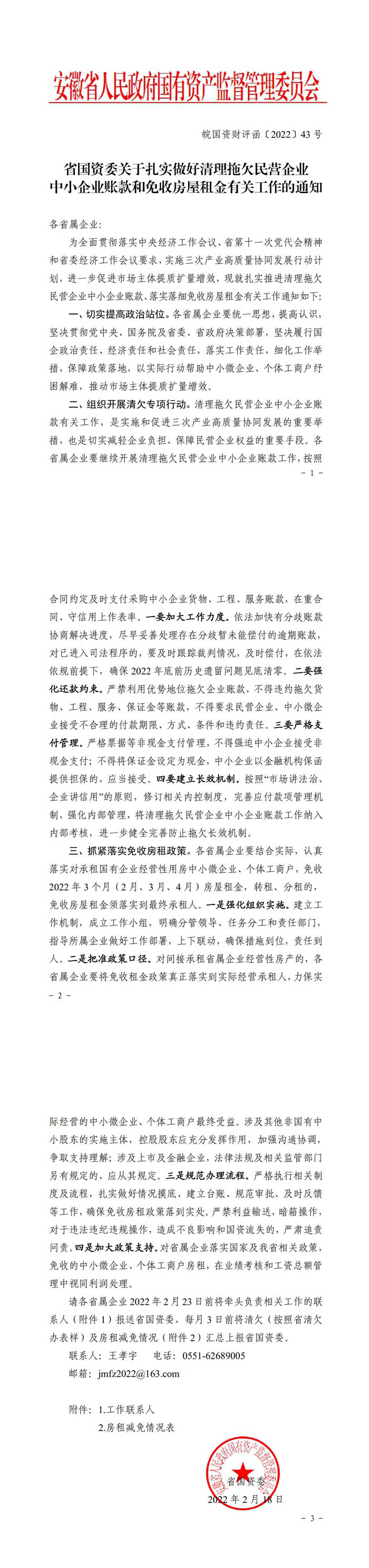 省国资委关于扎实做好清理拖欠民营企业中小企业账款和免收房屋租金有关工作的通知