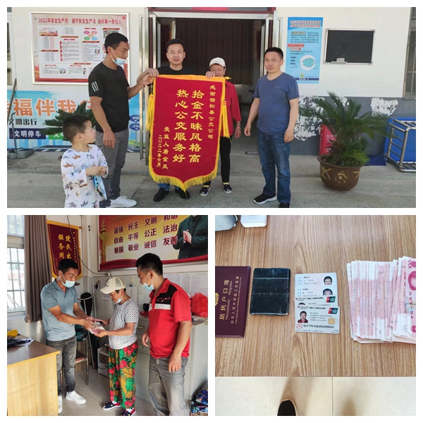 宿松城市公交分公司表示,黎师傅拾金不昧的行为不是偶然,更不是个例,“拾金不昧”其实是反映一个人、一个单位、一个集体的道德水平的一面镜子。黎师傅拾金不昧的精神,是无数个平凡公交人的缩影,他用真心为市民服务,在平凡的岗位上诠释着自己的人身价值,为广大乘客提供了安全、便捷、舒适的乘车环境。